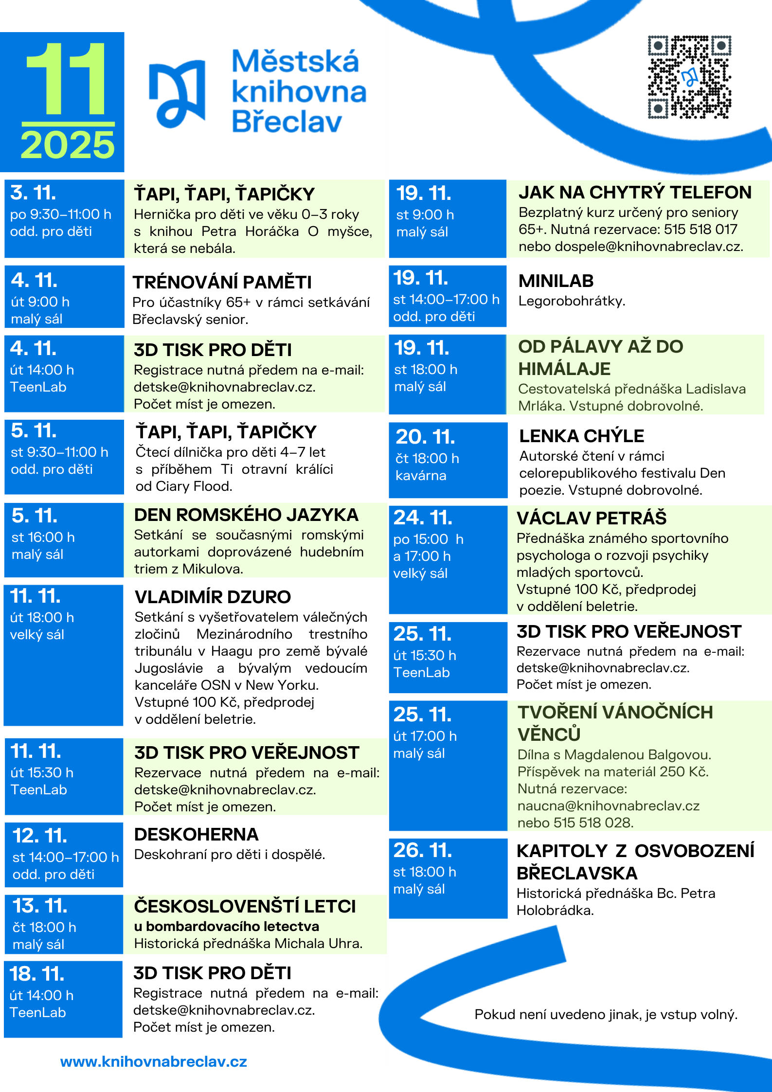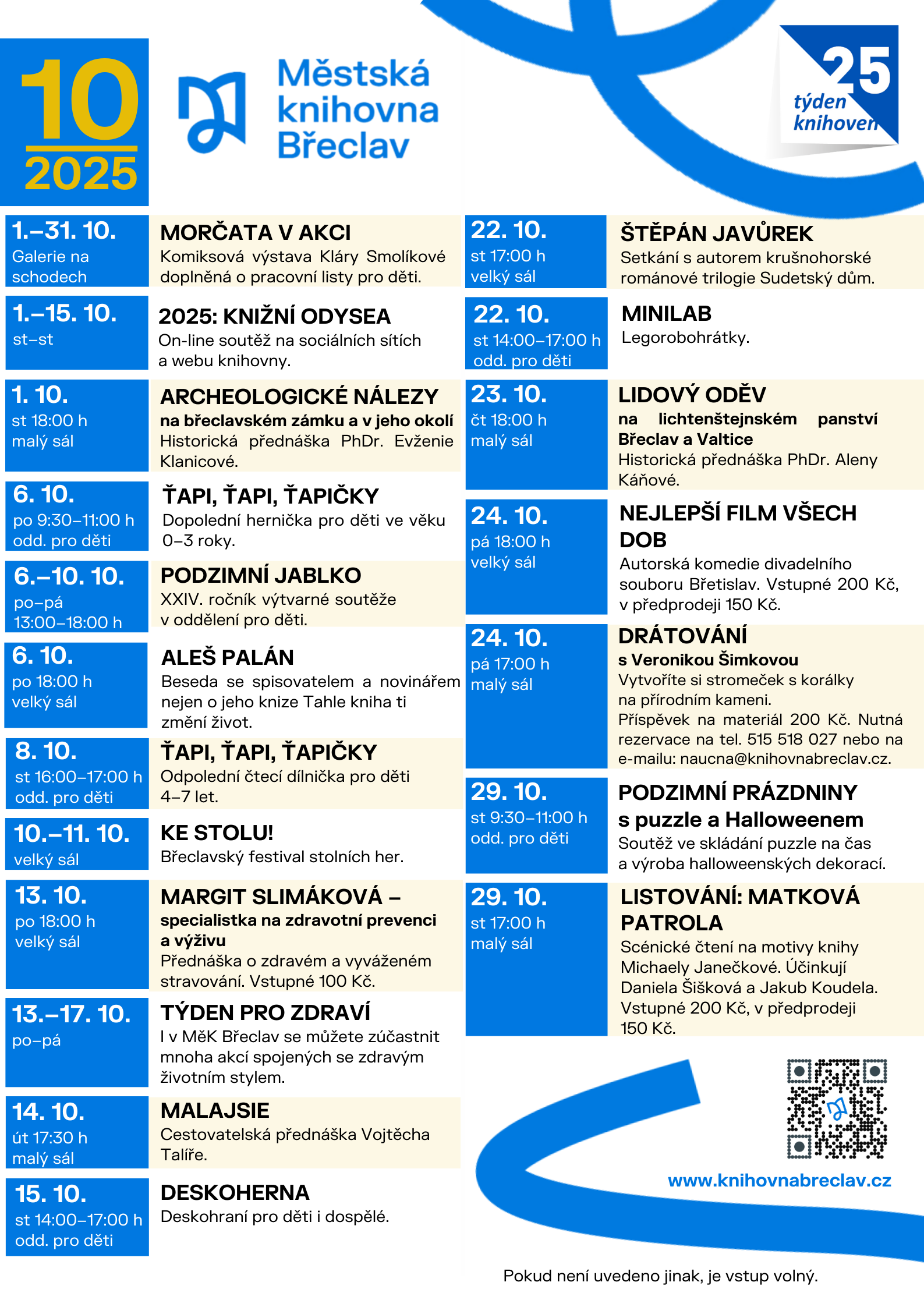 - Termín dle domluvy v otevíracích hodinách knihovny