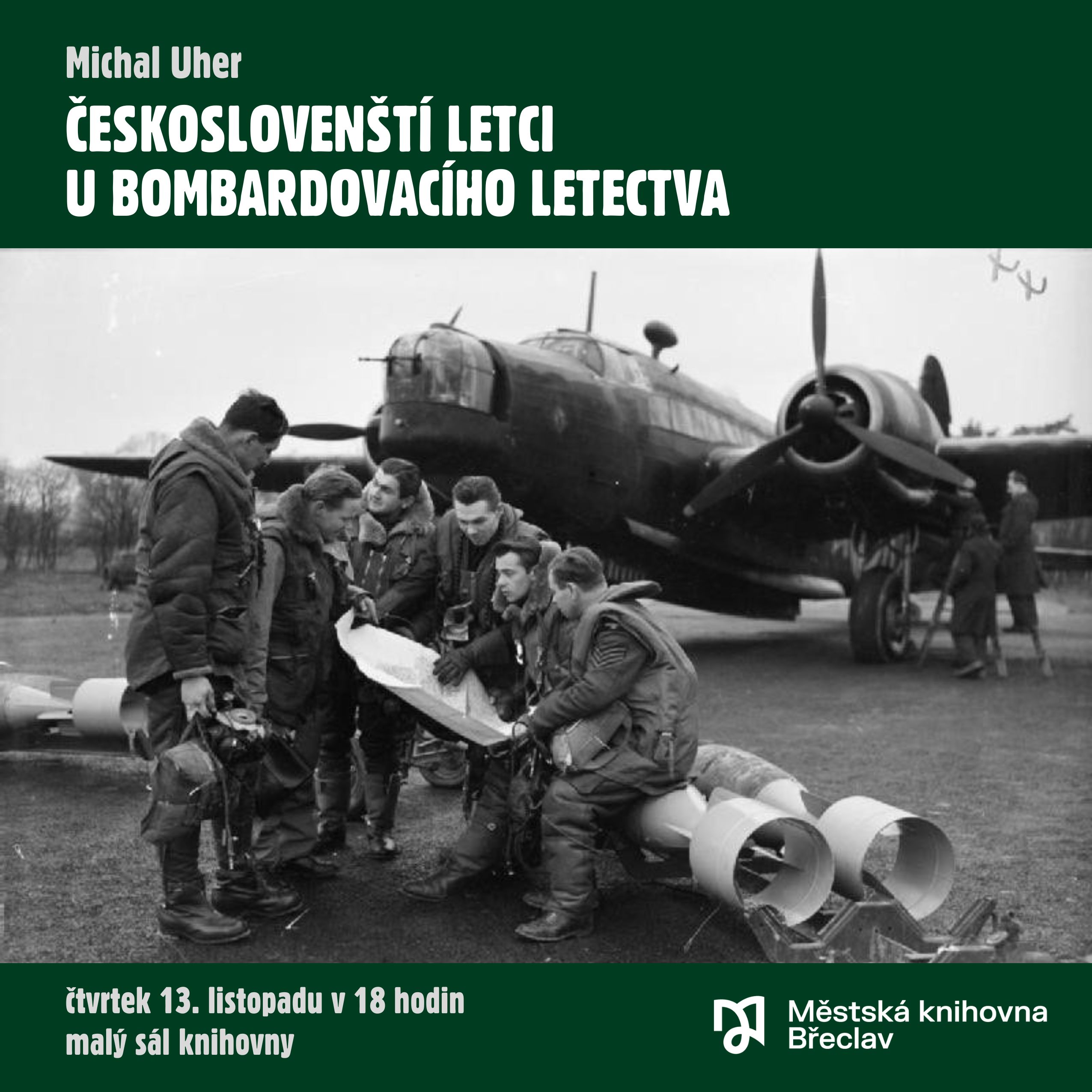 Zveme všechny zájemce na historickou přednášku Michala Uhra pořádanou k připomenutí 80. výročí konce druhé světové války Českoslovenští letci u bombardovacího letectva, která se koná ve čtvrtek 13. listopadu v 18 hodin v malém sále knihovny.