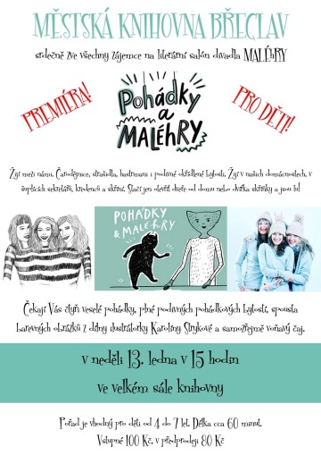 Srdečně zveme všechny malé i velké zájemce na literární salón divadla MALÉhRY. Čekají váš čtyři veselé pohádky plné podivných bytostí a spousta barevných obrázků z dílny ilustrátorky Karolíny Strykové a samozřejmě voňavý čaj.