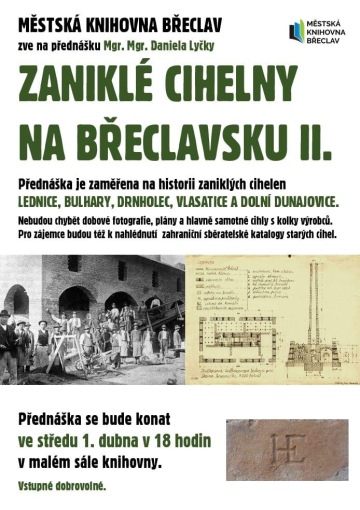 Příznivce regionální historie zveme na sérii dvou přednášek Mgr. & Mgr. Daniela Lyčky věnovaných zaniklým cihelnám na okrese Břeclav.