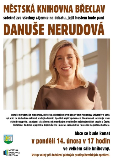 V pondělí 14. února se od 17 hodin uskuteční ve velkém sále knihovny beseda s českou ekonomkou a rektorkou Mendelovy univerzity v Brně Danuší Nerudovou.