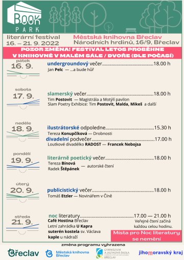 BookPark - literární festival v knihovně / 16.-21.9.2021