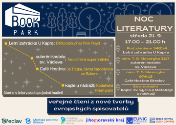 středa 21.9./17:00-21:00 noc literatury veřejné čtení - Café Hostina, U Kapra, kostel sv. Václava, kaple u nádraží