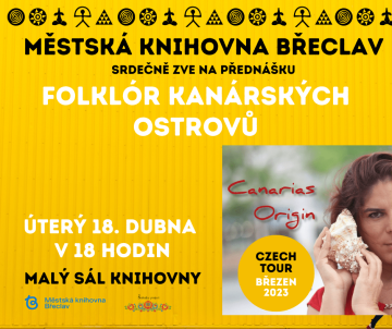 Srdečně zveme do malého sálu na přednášku Folklór Kanárských ostrovů. Historií, kulturou a folklorním dědictvím Kanárského souostroví vás provede hudebnice Monika Srncová, absolventka vyšší konzervatoře na Tenerife, nadšená propagátorka moravského folkloru a zakladatelka projektů Šuhajky a Canarias Origin, která žije na Kanárských ostrovech již dvacet let.