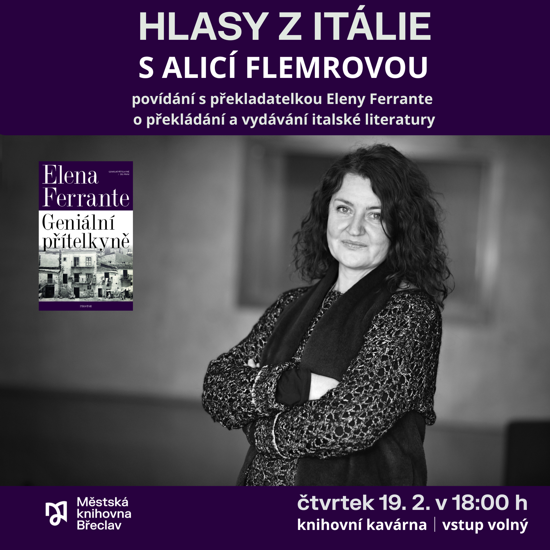 Hlasy z Itálie. Beseda s překladatelkou Alicí Flemrovou čtvrtek 19. 2. 2025 | 18:00