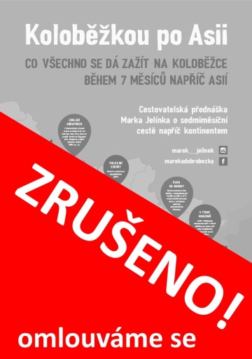Zveme všechny zájemce do velkého sálu na cestovatelskou přednášku Marka Jelínka o sedmiměsíční cestě koloběžkou po Asii.