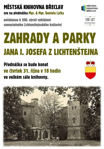 Přednáškový cyklus o rodu Lichtenštejnů pokračuje ve čtvrtek 31. října od 18 hodin ve velkém sále přednáškou Mgr. et Mgr. Daniela Lyčky nazvanou Zahrady a parky Jana I. Josefa z Lichtenštejna. Kromě asi nejznámějšího Lednicko-valtického areálu, půjde na Moravě o Adamovsko a Nové Zámky u Litovle, v Čechách o Koloděje u Prahy a v Dolním Rakousku o Hadersfeld s hradem Grafenstein, Sparbach a o areál u města Mödling s hradem Liechtenstein, Husarským chrámem aj. Nebudou chybět dobová vyobrazení původně zkrášlující zdi knížecího vídeňského městského paláce na Herrengasse.
