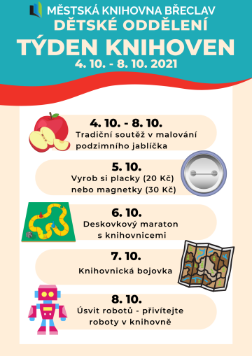 V Týdnu knihoven je v dětském oddělení pro malé i velké čtenáře připravena v čase vždy od 13.00 do 17.30 hodin celá škála nejrůznějších zajímavých akcí: