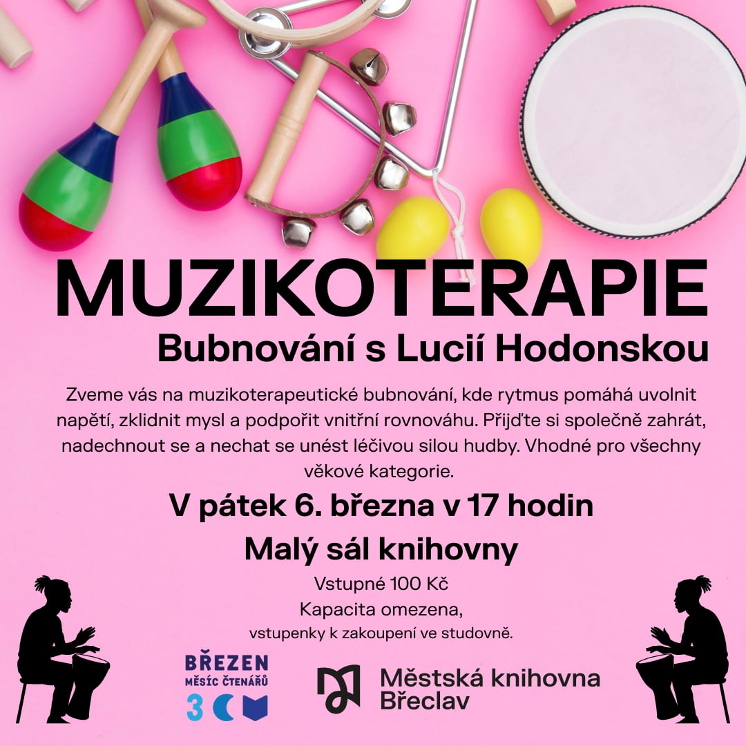 Zveme vás na muzikoterapeutické bubnování, kde rytmus pomáhá uvolnit napětí, zklidnit mysl a podpořit vnitřní rovnováhu. Přijďte si společně zahrát, nadechnout se a nechat se unést léčivou silou hudby. Vhodné pro všechny věkové kategorie.