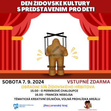 Přijďte oslavit Den židovské kultury s programem pro celou rodinu. Děti si užijí představení s Loutkovým Divadélkem Radost Břeclav. Dospělí mohou využít volného vstupu do areálu obřadní síně a židovského hřbitova. Ve volném čase bude k dispozici malá kreativní dílnička.