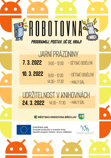 V pondělí 7. února, 21. února a 7. března proběhnou ve velkém sále další setkání s virtuální realitou, prostřednictvím brýlí pro virtuální 3D realitu Oculus Quest 2. Tyto aktivity jsou určeny pro děti od 8 let. Ve čtvrtek 10. a 24. února se v malém sále knihovny budou konat další setkání nadšenců do programovatelných robotů pro všechny věkové kategorie.